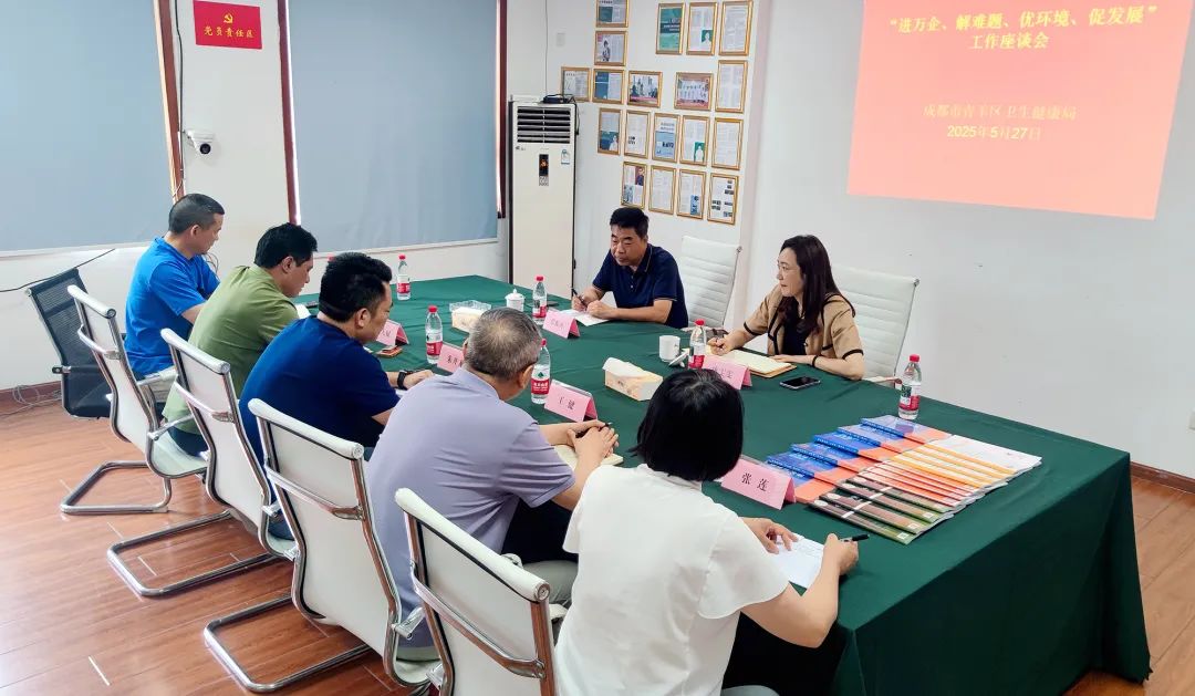 在成都西部痛风风湿医院二楼风湿免疫MDT中心举办的“进万企、解难题、优环境、促发展”工作座谈会上,成都西部痛风风湿医院党支书记伍天赋首先对唐雯雯局长一行的到来表示热烈的欢迎,并详细汇报了医院的发展历程、现状、规划以及面临的挑战与困难,重点介绍了医院中医适宜技术、特色诊疗技术、教学科研论文与专著成果、院内中药制剂等方面的建设成果。