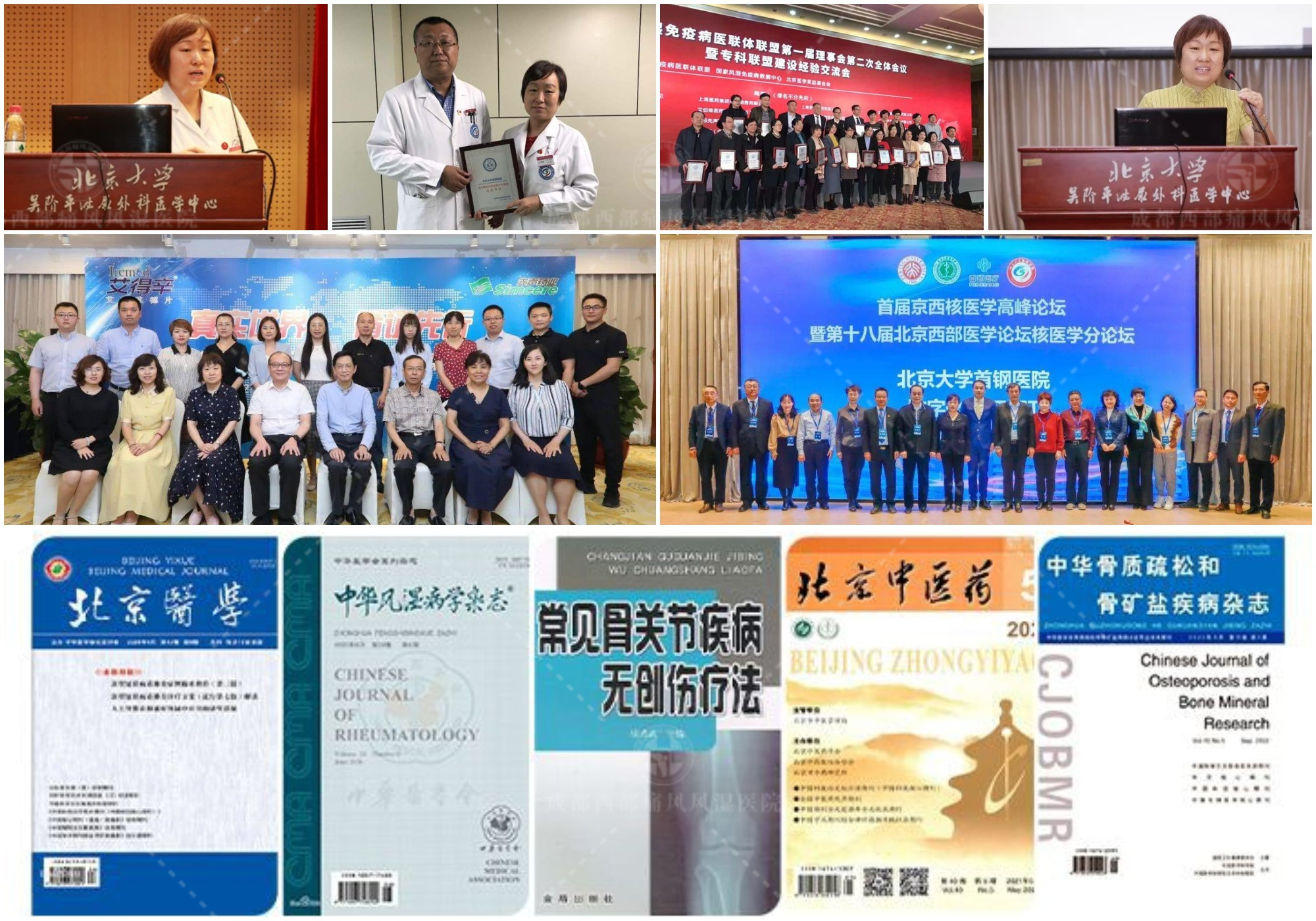 - 并在国家级期刊发表核心论文《痛风性关节炎患者血清中IL-6水平检测及其相关性研究》、《类风湿关节炎患者骨质疏松症患病及治疗现状》、《男女强直性脊柱炎的对比研究》、《37例银屑病关节炎临床分析》《银屑病关节炎的治疗》《干燥综合征的肺间质纤维化临床分析》等近20篇。
