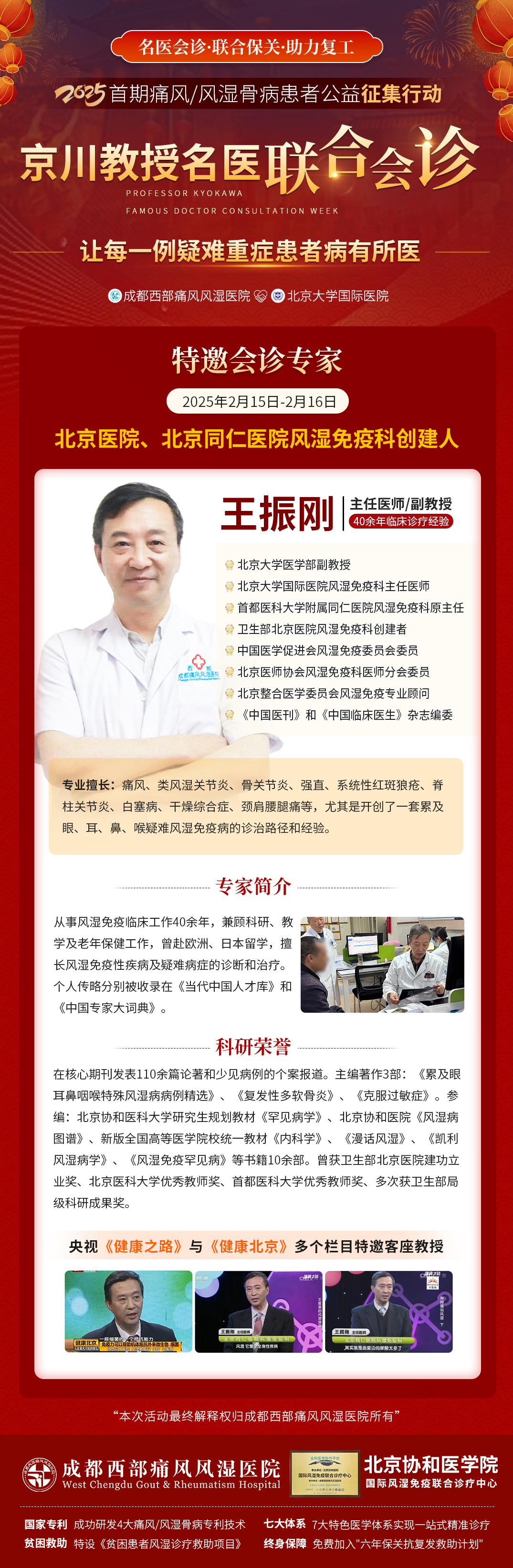2月15-16日,京川名医汇聚,年后首场痛风风湿骨病会诊等你来!