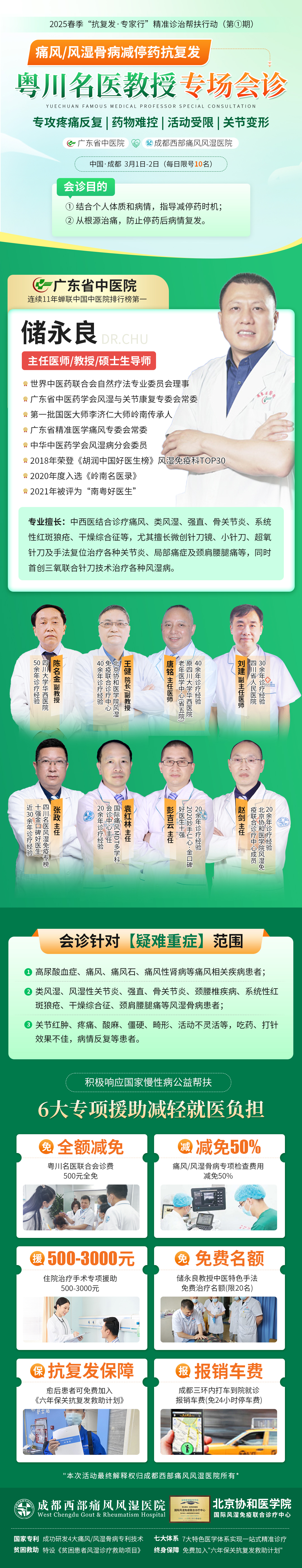 广东省中医院储永良教授莅临成都亲诊,痛风/风湿骨病患者速约→