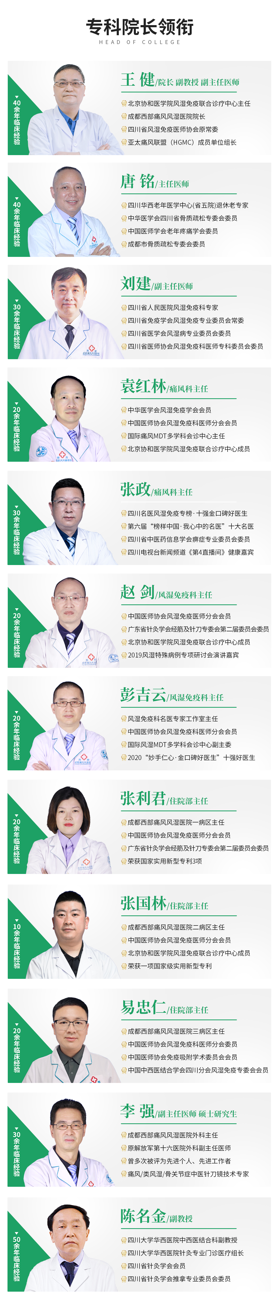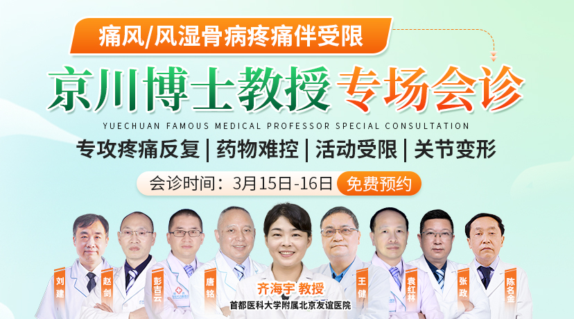 会诊人群:痛风、痛风石、类风湿关节炎、风湿性关节炎、强直性脊柱炎、骨关节炎、颈腰椎疾病、系统性红斑狼疮、干燥综合征、颈肩腰腿痛等风湿骨关节病患者。