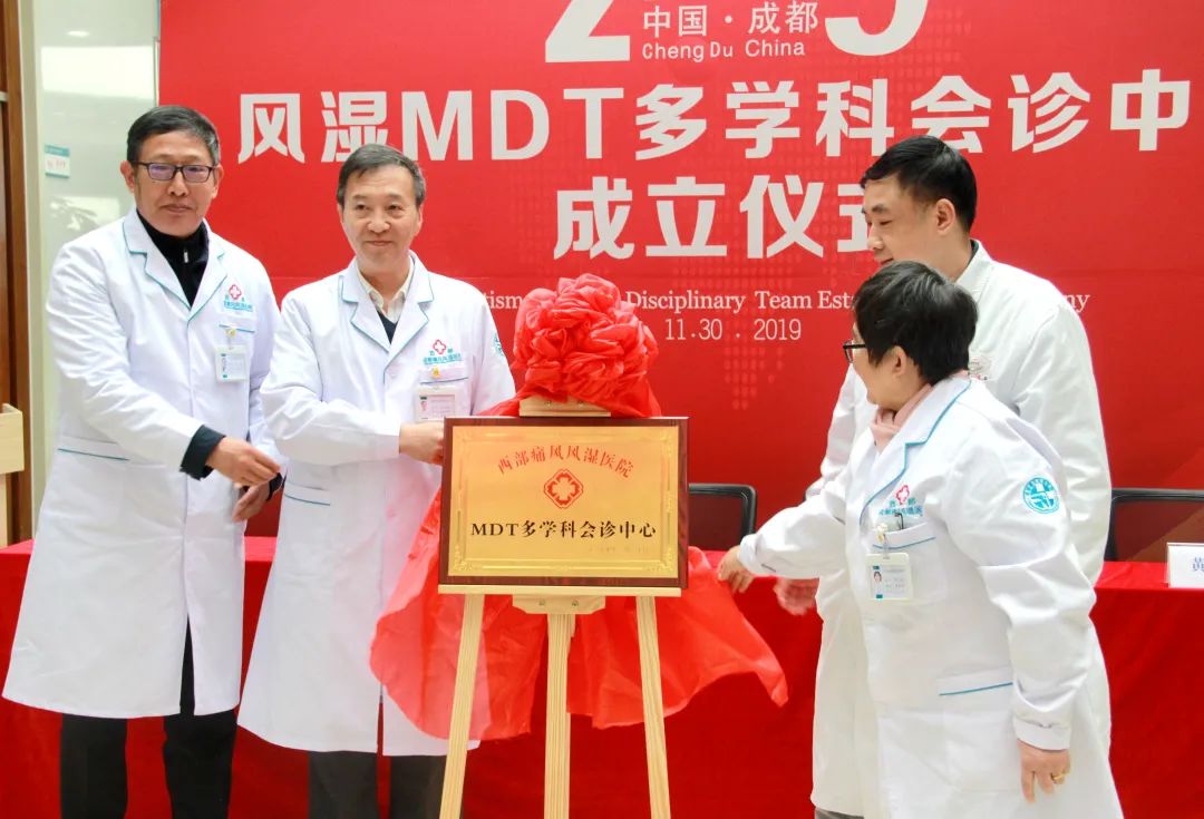 2019 年,风湿免疫科联合北京协和医院、北京大学国际医院、清华大学长庚医院、北京积水潭医院、上海同济医院、广东省中医院、四川大学华西医院、四川省人民医院等多家医院风湿免疫科、骨科、内科、中医科、康复科专家名医,共同成立了风湿MDT 多学科诊疗中心,定期组织北京、上海、广州等地风湿专家开展疑难病例会诊,共服务疑难风湿患者10 万余名,成为西南地区风湿病学界的旗帜之一。