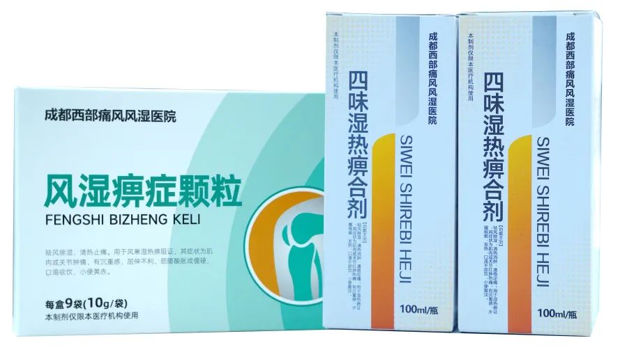 与此同时,风湿免疫科还与医院中医科、药剂科展开科室合作研发,截至目前,成都西部痛风风湿医院共研制治疗风湿免疫性疾病的自制药四味湿热痹合剂、风湿痹症颗粒、祛瘀止痛丸共三款,均获得四川省药品监督管理局批准;首批上市的风湿自制药不足月余即被一抢而空,广受风湿患者好评。